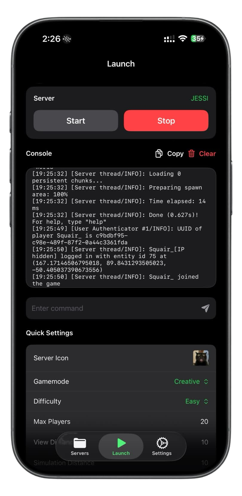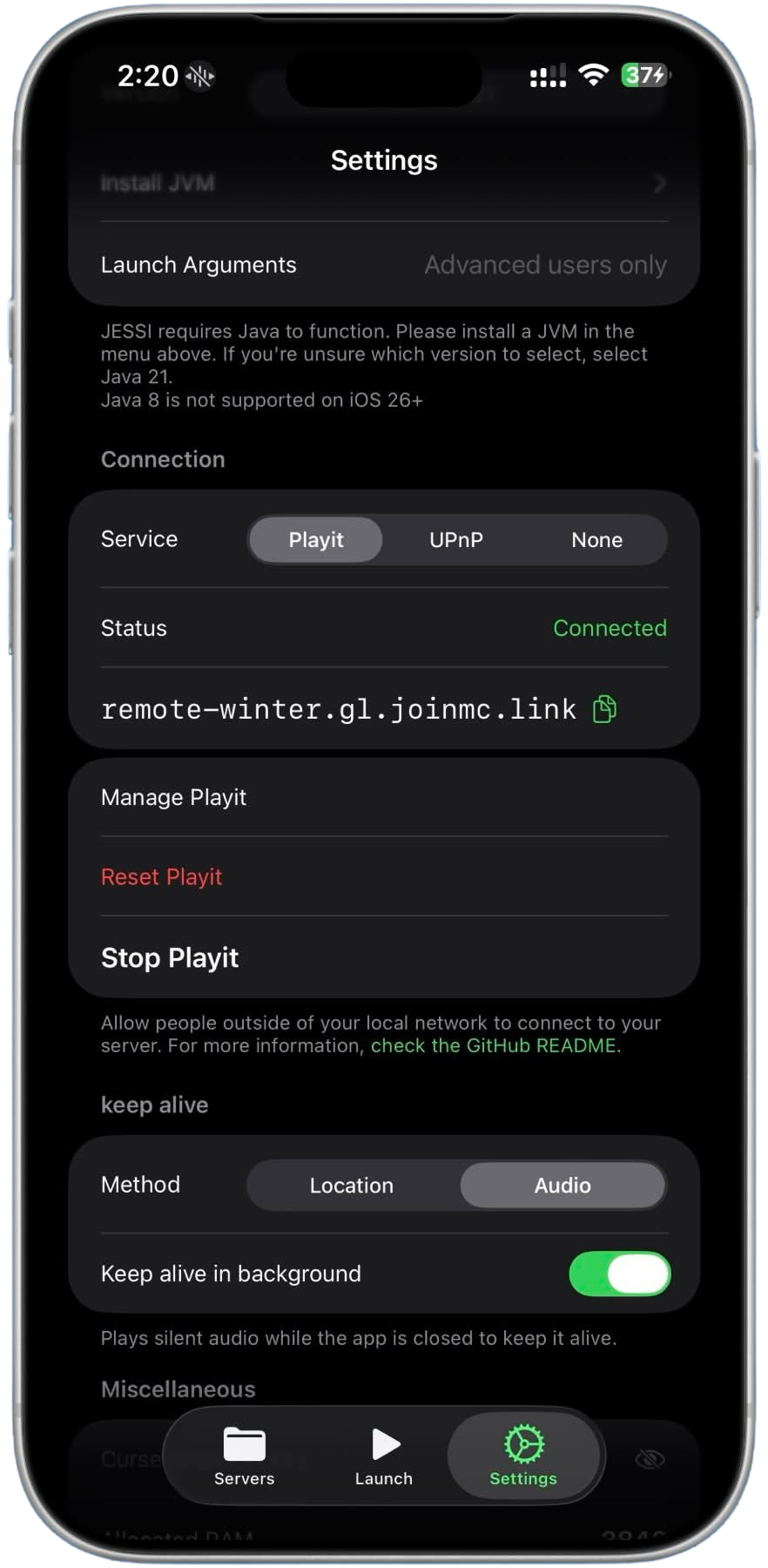 JESSI is a jailed app that runs Minecraft: Java Edition servers natively on iOS, targeting iOS 14+. While JESSI can run on non jailbroken devices, it requires JIT to be enabled in order to actually function.